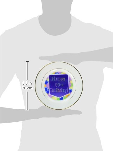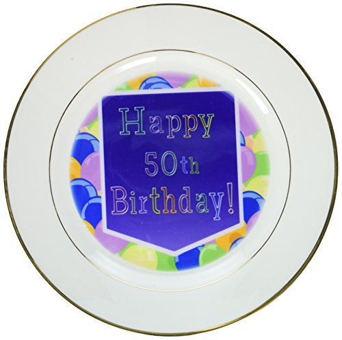 3dRose cp_173076_1 Balloons with Purple Banner Happy 50Th Birthday-Porcelain Plate, 8-Inch