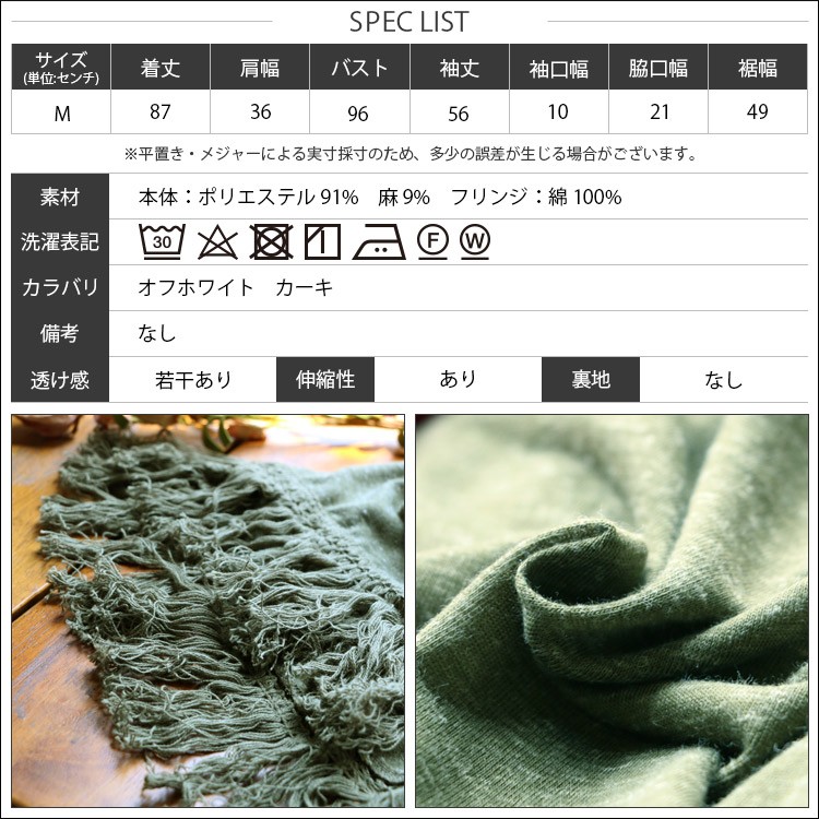 素材:本体 ポリエステル91% 麻9% フリンジ 綿100%