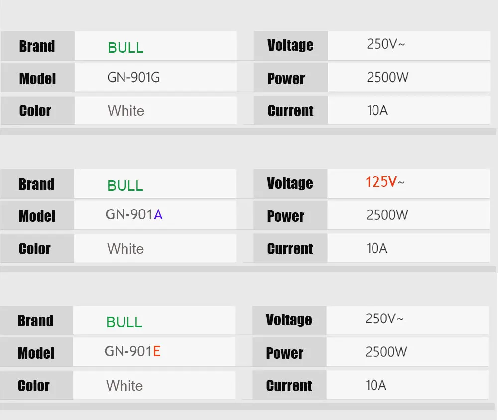 Option 3,GN-901E:10A , 250V-