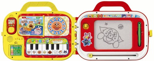 楽しいおべんきょうがいっぱい!アンパンマンと楽しく学ぼう。閉じるとようちえんバスのかたちをしているよ。