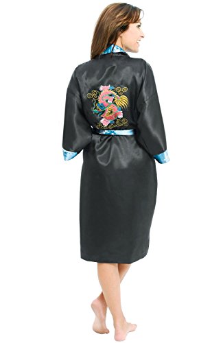 Alexander Del Rossa Traditional Chinese Kimono Reversible Satin Lounge Robe, Medium Violet Red (A0004WVOMD)