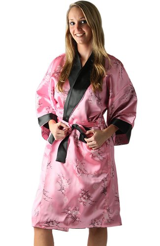 Alexander Del Rossa Traditional Chinese Kimono Reversible Satin Lounge Robe, Medium Pink (A0004PNKMD)