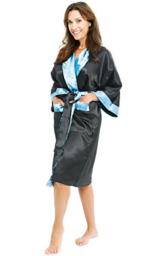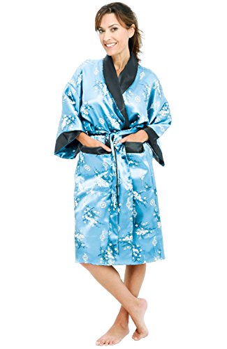 Alexander Del Rossa Traditional Chinese Kimono Reversible Satin Lounge Robe, Large Light Blue (A0004LBLLG)