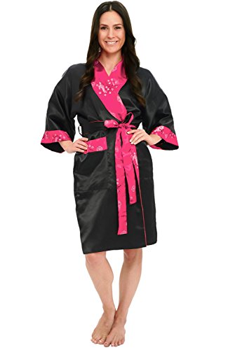 Alexander Del Rossa Traditional Chinese Kimono Reversible Satin Lounge Robe, XL Pink (A0004PNKXL)