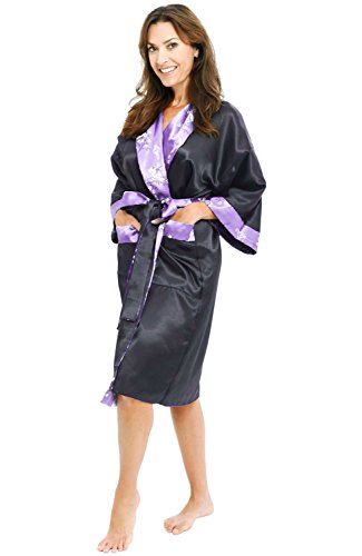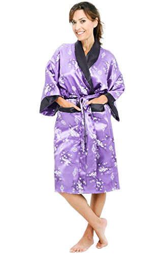 Alexander Del Rossa Traditional Chinese Kimono Reversible Satin Lounge Robe, Medium Lavender (A0004PURMD)