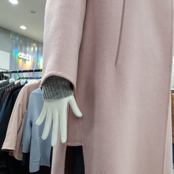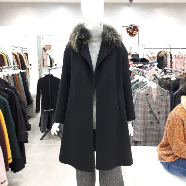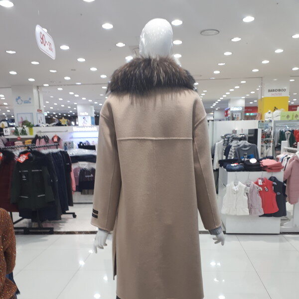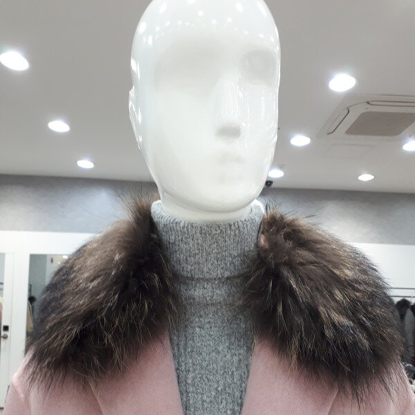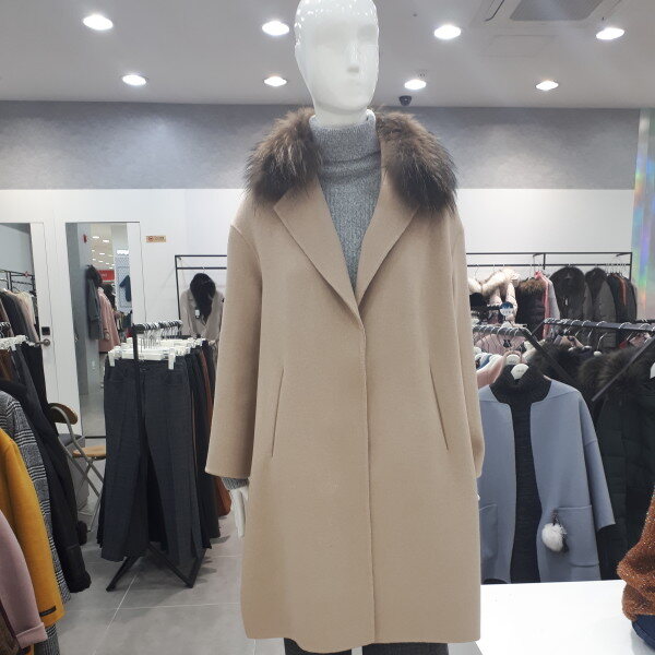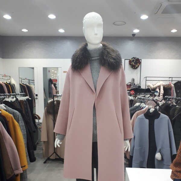 풍성한 라쿤 털과 캐시미어 모직 핸드메이드 코트입니다