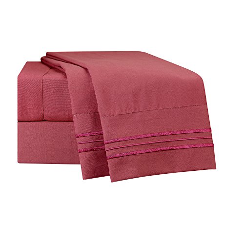 -. Feature : Clara Clark's bed sheet sets are made of 100% Double Brushed Microfiber - it have a nice 3-Ln. embroidery on the Pillowcases / Deep-pocket fitted sheet, fully elasticized fitted sheet to fit for mattresses up to 18 inches thick / Easy Care - Wrinkle-free, Fade-resistant, Machine wash in cold and tumble dry on low