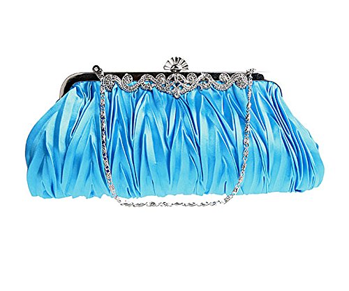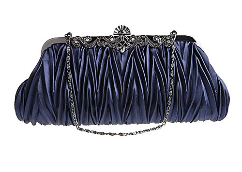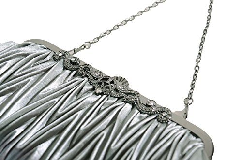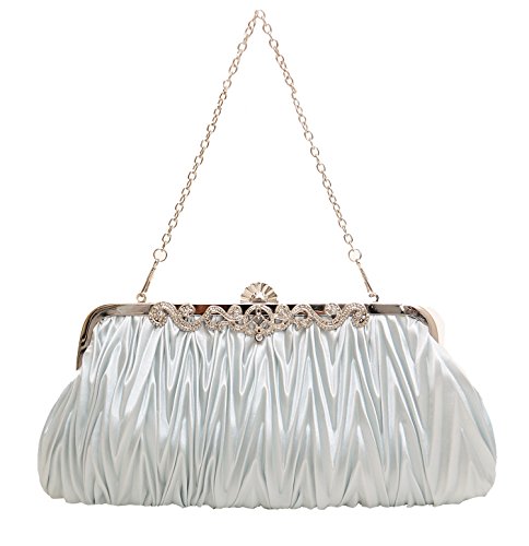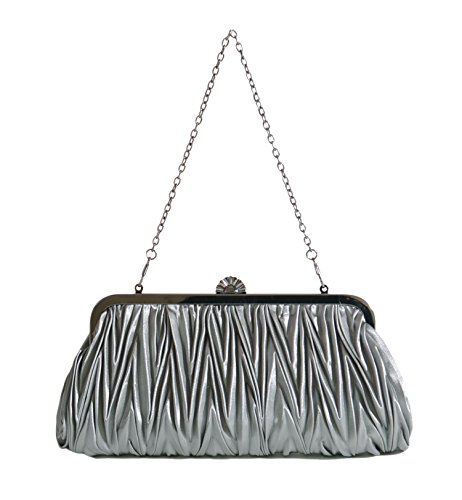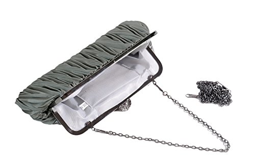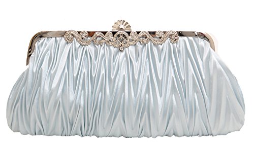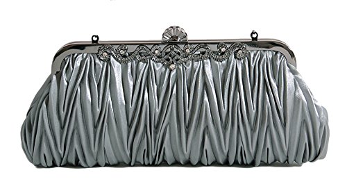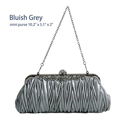 Pulama®Evening Handbag Classic Satin Detachable Strap Bluish Grey Clutch