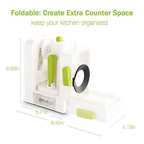 - This New Slicer has Folding Features,that Makes it easy to Placed and Store in the Kitchen.Beside,The suction cup feet secure the unit to work surface to keep it steady at you slice