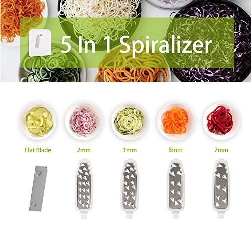 Spiralizer Vegetable Slicer,Zanmini 5 Stainless Steel Blades for Spaghetti Maker for Low Carb/Paleo/Gluten-Free Meals