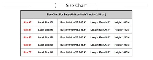 Size Details: (Unit:cm/inch/1 inch = 2.54 cm) Size:3T ?Label Size:100 ?Bust:60-90cm/23.6-35.4" ?Length:36cm/14.2" ?Height:100CM Size:4T ?Label Size:110 ?Bust:60-90cm/23.6-35.4" ?Length:39cm/15.4" ?Height:110CM Size:5T ?Label Size:120 ?Bust:60-90cm/23.6-35.4" ?Length:42cm/16.5" ?Height:120CM Size:6T ?Label Size:130 ?Bust:60-90cm/23.6-35.4" ?Length:45cm/17.7" ?Height:130CM Size:7T ?Label Size:140 ?Bust:60-90cm/23.6-35.4" ?Length:48cm/18.9" ?Height:140CM About Commodities:? ★1. There may be a little difference of the color between the picture and the real goods because of the pixel. We hope you can understand sincerely.? ★2. Please allow slight deviation for the color and measurement. Thanks.? ★3. The goods will be delivered to you about18-25 days, if you need it in urgency you can choose DHL, the delivery time is 3-5 days. Please contact us if you have question about the delivery.? ★4.My store updates often, you are welcome to visit here at any time. ?? 0 |