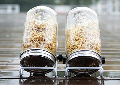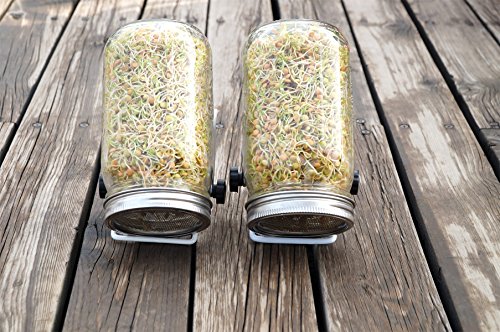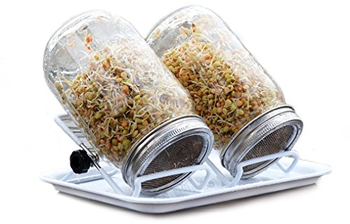 Jillmo Brand Sprouting Lids Set -- 2 Pack Stainless Steel Rings 2 Pack Curved Mesh Strainers 2 Piece Holders with a White Plate for Seed Sprouting(Jar not Inculde)