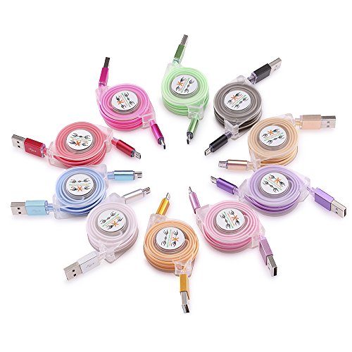 -. Title : Sudroid 10PCS 3Ft 1 Meter Colorful Tangle Free Retractable LED Light Lamp Micro USB Charger Sync Data Cable Charging Extension Cord for Samsung, Nexus, LG, Motorola, Android Smartphones and More