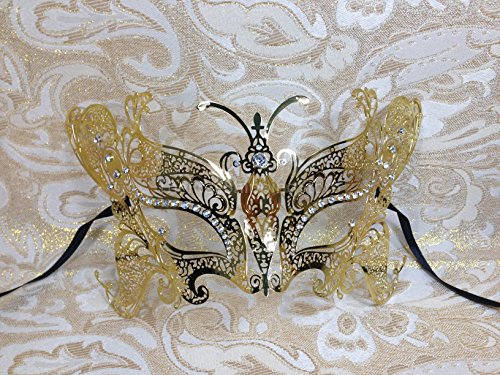 -. Title : Gold Butterfly Metal Laser Cut Venetian Masquerade Mask with Clear Stones