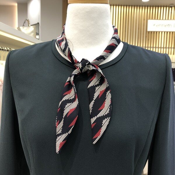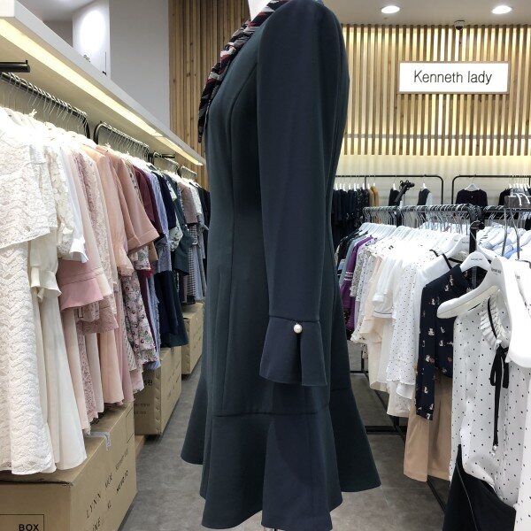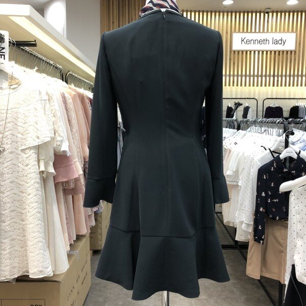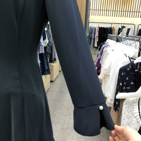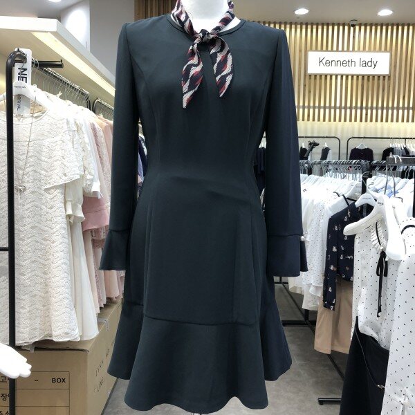 세련된 라운드넥의 플레어원피스 입니다.군더더기 없는 깔끔한 핏의 마치 튤립같은 차르르한 플레어원피스예요.전체적으로 라인보정은 물론 팔소매는 셔링처리와 진주버튼이 달려있어 심플하지만 필요한 부분엔 포인트가 잘 들어간 센스있는 원피스예요.함께 코디된 스카프는 세트상품입니다.