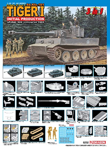 【実車について】第二次世界大戦でドイツ軍が配備したもっとも強力な戦車のひとつ、ティーガーIは1942年に先行量産型が完成、さっそく、ソビエト軍のT-34やKV-Iなどに手を焼いていた東部戦線に投入されました。全部隊の中で最初にティーガーIを配備された部隊がレニングラード近郊に展開していた第502戦車大隊は全部隊の中で最初にティーガーIを配備された部隊で、その威力で対戦したソビエト軍を驚かせたのです。しかしながら配備を急いだため、極初期型ではトラブルも発生。戦場においての修理や放棄も余儀なくされたのです。その中の1両、車体番号100号車は戦闘において故障。放棄されたものがソビエト軍に鹵獲されます。砲塔の左右には現地で工具箱がつけられた独特なものでした。ソビエトではこの車両を展示。プロパガンダに利用したほか、この車両を調査することで、ティーガーIとの戦い方を研究したのです。【モデルについて】モデルはドイツのティーガーI初期生産型を1/35スケールで再現。2005年にリリースされ話題を集めた伝説的キットが戦後70周年の今年、部品を再構成し新たな形で甦りました。キットは砲塔の左右に雑具箱を装備した独特なスタイルで知られる第502重戦車大隊のターレットNo.100号車、そして、同じく第502重戦車大隊のターレットNo.121号車、そして、渡河シュノーケルを装着したタイプの3タイプから選んで組み立てられる3イン1キットです。スライド金型を使って一体で再現された砲塔には100号車に取り付けられていた砲塔両サイドの雑具箱や121号車が砲塔後部に取り付けていたIII号戦車用の雑具箱(ゲペックカステン)などもしっかりとセット。それぞれの車両の特徴あるスタイルを再現可能です。また、渡河用のシュノーケルを装着するタイプではMGマウントのキャップパーツもセットされ、渡河仕様をしっかりと再現します。もちろん、キューポラの形状やスモークディスチャージャーなどをはじめ、各部の極初期生産型の特徴も正確に再現。開閉選択可能なハッチ類は内側のディテールもモデル化。情景設定の幅も広げていただけます。DS素材で成形された、ティーガーIの様子を撮影する兵士のフィギュア2体もセットされています。ティーガーI初期生産型を余すところなく再現する内容充実のキットはミリタリーファンには見逃せないキットです。【主な特徴】■砲塔の左右に雑具箱を装備した独特なスタイルで知られる第502重戦車大隊のターレットNo.100号車、同じく第502重戦車大隊のターレットNo.121号車、渡河シュノーケルを装着したタイプの3タイプから選択可能な3イン1キット■キューポラの形状やスモークディスチャージャーなどをはじめ、各部の初期生産型の特徴も正確に再現■ハッチ類は開閉を選択して製作可能■撮影する兵士のフィギュア2体をセット■履帯は一体式のDSトラックを採用Feature