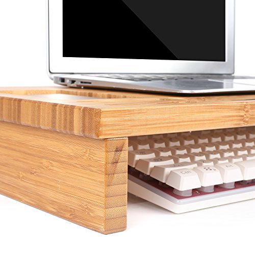 1, HIGH QUALITY MATERIAL: This bamboo monitor stand riser finished by Natural Eco-friendly and sturdy bamboo board, more sturdy than plastic stand and bamboo material makes your stand looks very fantastic.