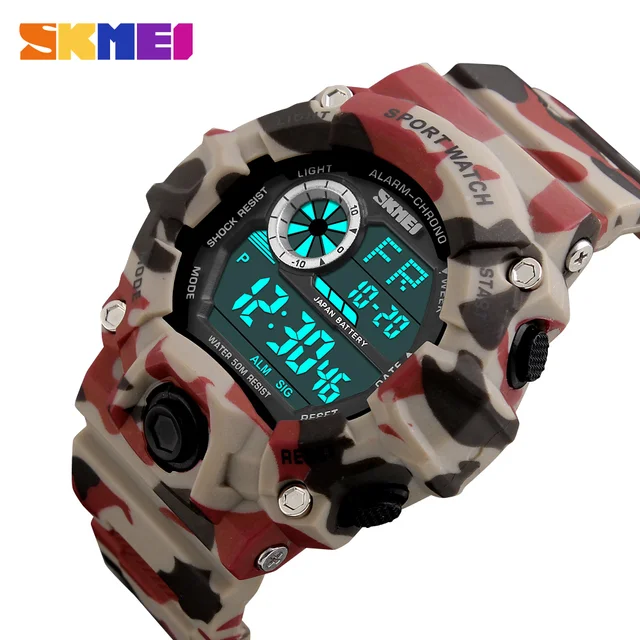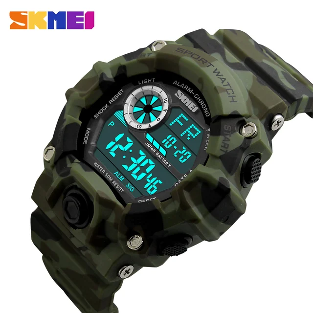| [해외] S-충격 SKMEI 남성 스포츠 시계 남성 육군 위장 군사 시계 LED 디지털 시계 패션 야외 등반 손목 |