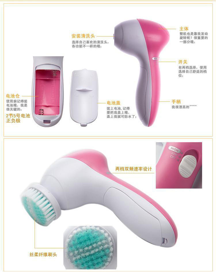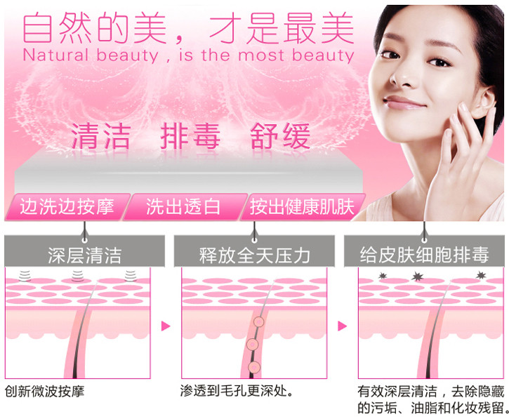 5:“柔软微细毛刷”配头:配合洁面乳,清洁脸部的污垢,柔软细密的刷毛,在洗脸的时候,可有效清洁毛孔的污垢、灰尘,给脸部细腻柔和的清爽享受。