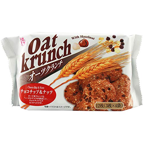 原材料:小麦粉、オーツ麦フレーク、チョコチップ(砂糖、植物油脂、ココアパウダー)、砂糖、植物油脂、水飴、ココアパウダー、食塩、ヘーゼルナッツ、膨脹剤、乳化剤、香料、(原料の一部に大豆を含む)