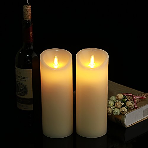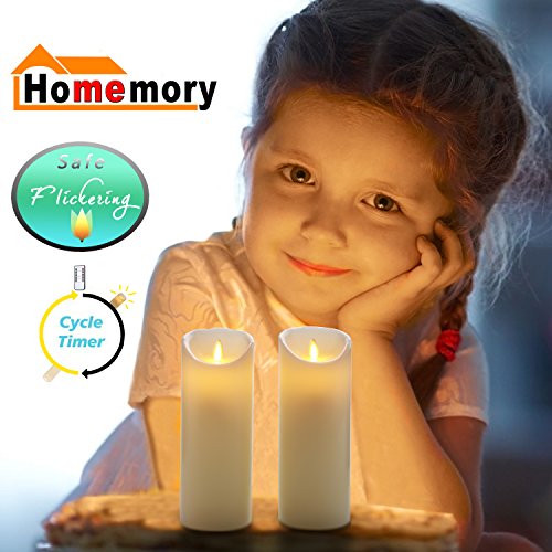 Homemory 9 Inch Flameless Timer Candle with Remote, Pack of 2 Realistic LED Flickering Votive Candle Power by Battery, Electric Pillar Candle with Moving Wick for Church, Spa, Table, Wall Sconce