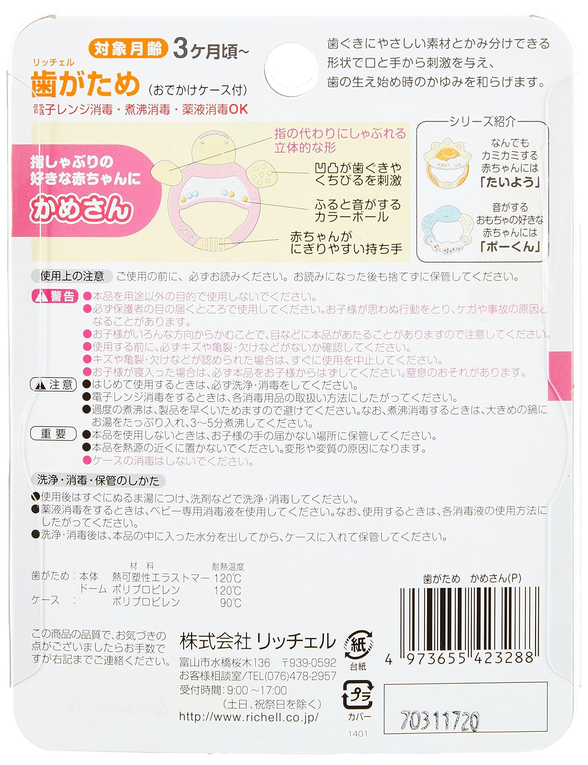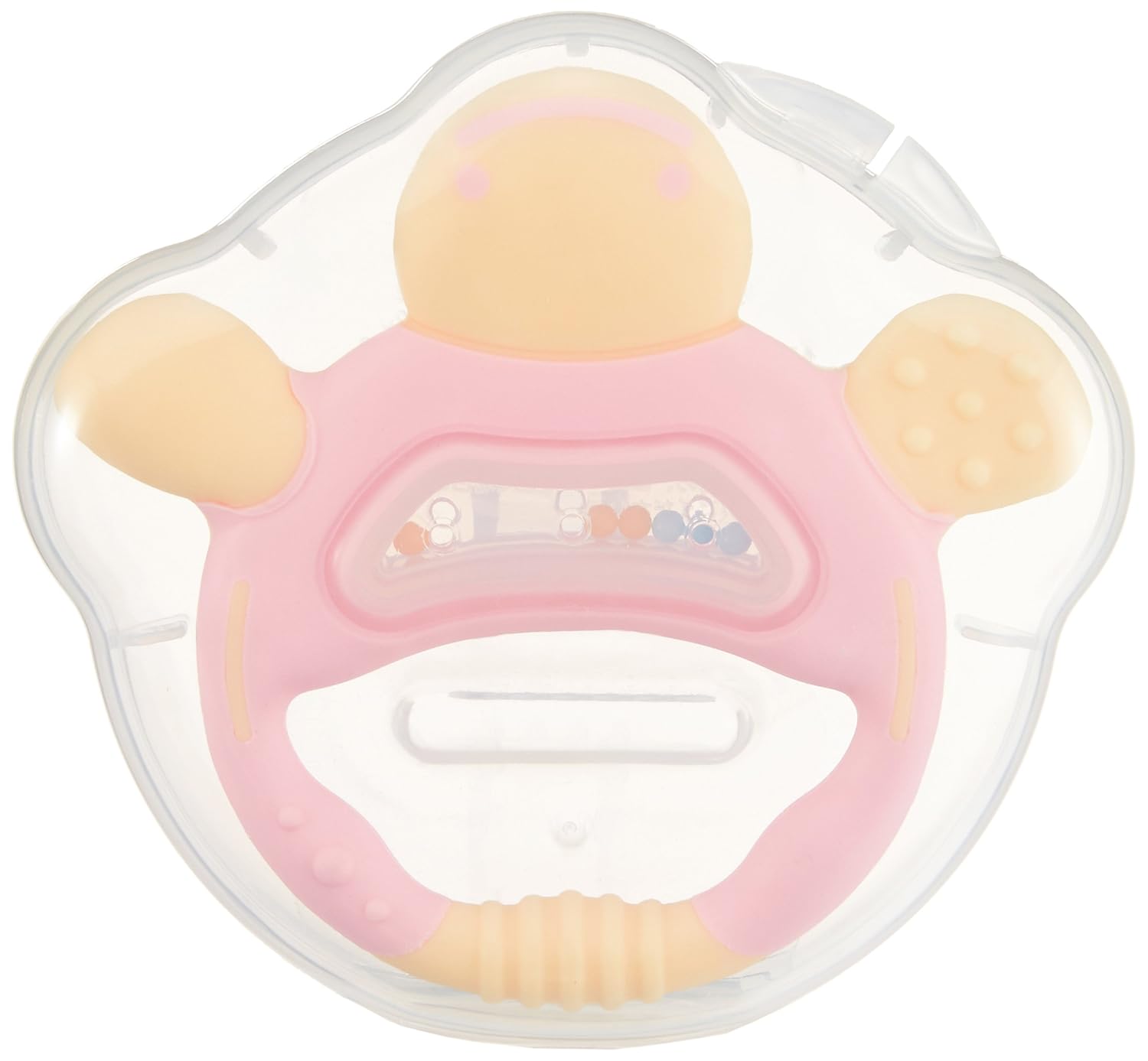 歯ぐきにやさしい素材でかみ分けでき、振るとシャカシャカ音がして口手耳に刺激を与えます。