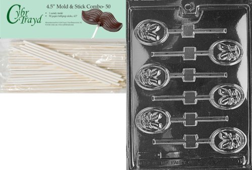 Cybrtrayd 45St50-M066 Ballet Slipper Lolly Miscellaneous Chocolate Candy Mold with 50-Pack 4.5-Inch Lollipop Sticks