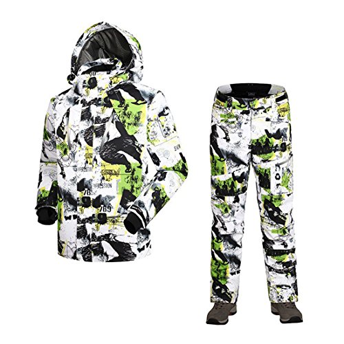 -. Title : Jiyaruメンズ防水性通気性ファブリックカラフルプリントスキージャケットとパンツセット