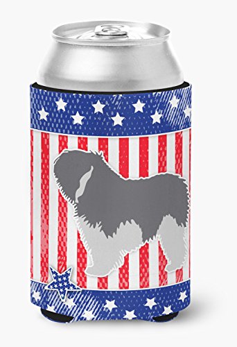 Caroline's Treasures BB3332CC USA Patriotic Polish Lowland Sheepdog Dog Can or Bottle Hugger, Multicolor
