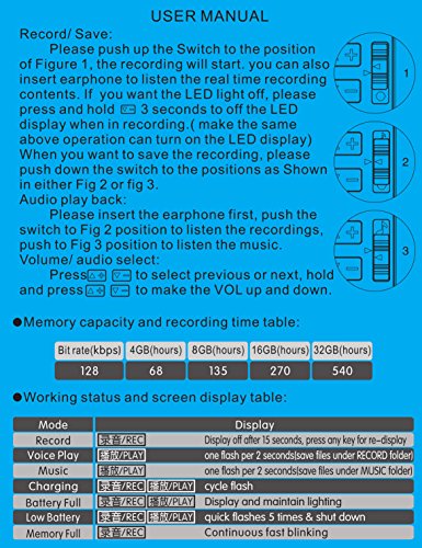 ✔ MULTI-FUNCTION:USB Flash Drive,MP3 music player,voice recorder(ditacphone)all functions in one.Simple to operate,3-ways switch to control all function, push up to turn on and record.