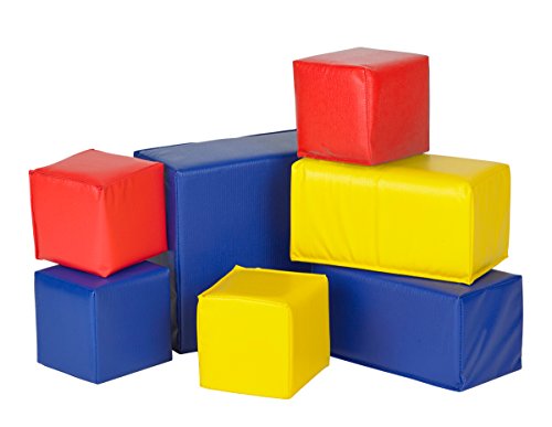 -. Feature : 7-Piece toddler block set / Made up of seven bright and chunky blocks / Large block: 12" W x 12" D x 6" H / Medium block: 12" W x 6" D x 6" H / Small block: 6" W x 6" D x 6" H