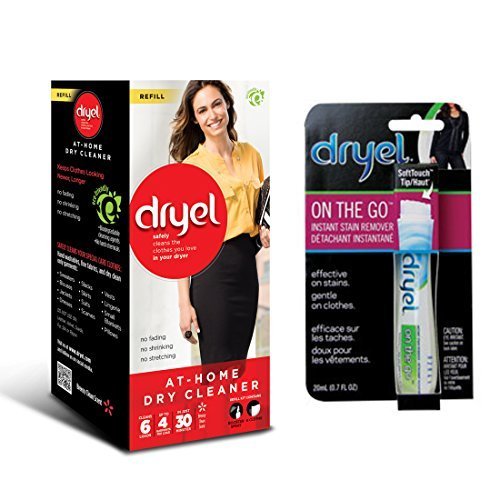 Studio : Dryel Publisher : Dryel Binding : Health and Beauty Product Description 2 item bundle - (1) Dryel 6-count refill and (1) Dryel On The Go Stain Remover Pen, Safely clean the clothes you love in your dryer, Keeps clothes looking newer, longer - No fading, shrinking, or stretching!, On The Go Stain Pen helps remove fresh stains instantly 0