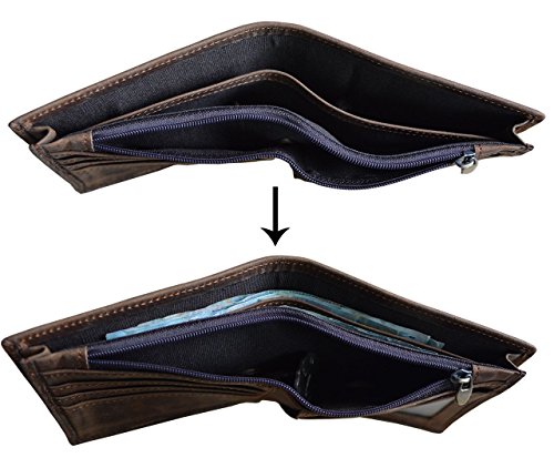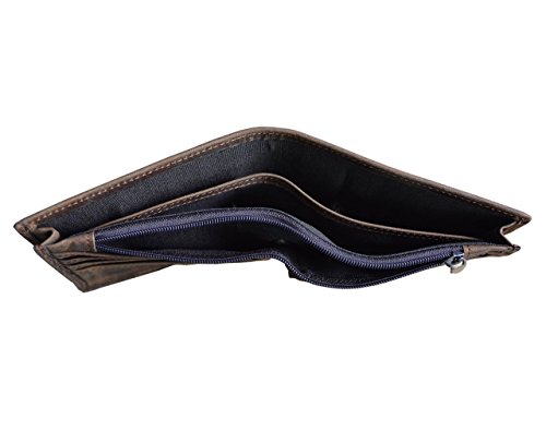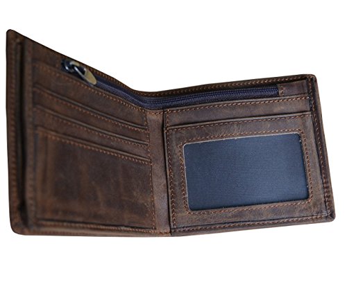 -. Title : Men's Genuine Leather Bifold Wallet With Long Zipper Pocket Brown Pocket Wallet
