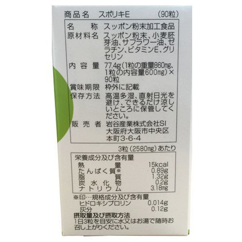 原材料:すっぽん粉末、小麦麦芽油、サフラワー油、ゼラチン、ビタミンE、グリセリン