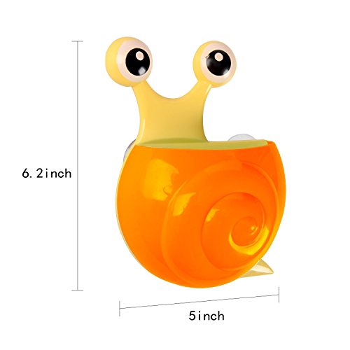 Saim Cute Cartoon Little Snail Kids Wall Suction Cup Mount Toothbrush Holder Container (Orange)