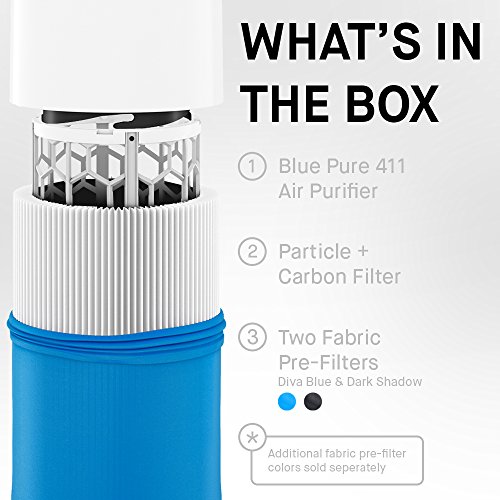 Blue Pure 411 Air Purifier with Particle and Carbon Filter for Allergen and Odor Reduction, Washable Pre-Filter, Small Rooms, by Blueair