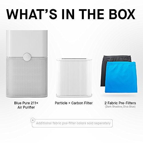 Blue Pure 211+ Air Purifier with Particle and Carbon Filter for Allergen and Odor Reduction, Washable Pre-Filter, Large Rooms, by Blueair