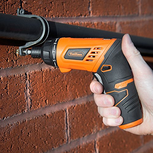 VonHaus Cordless Electric 3.6V Lithium-Ion LED Light Rechargeable Screwdriver with Twistable Handle and 50 Piece Accessory Set Including Case