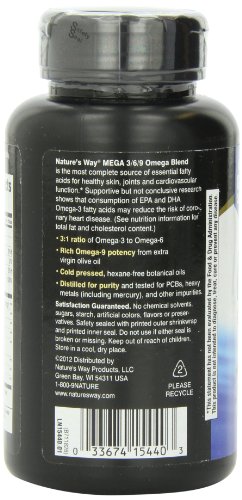 -. Binding : Health and Beauty -. Brand : Nature's Way -. Label : Nature's Way -. Manufacturer : Nature's Way -. NumberOfItems : 1 -. PackageQuantity : 1 -. ProductGroup : Health and Beauty -. ProductTypeName : HEALTH_PERSONAL_CARE -. Publisher : Nature's Way -. Studio : Nature's Way -. Title : Nature's Way Mega 3/6/9 Blend 1350mg