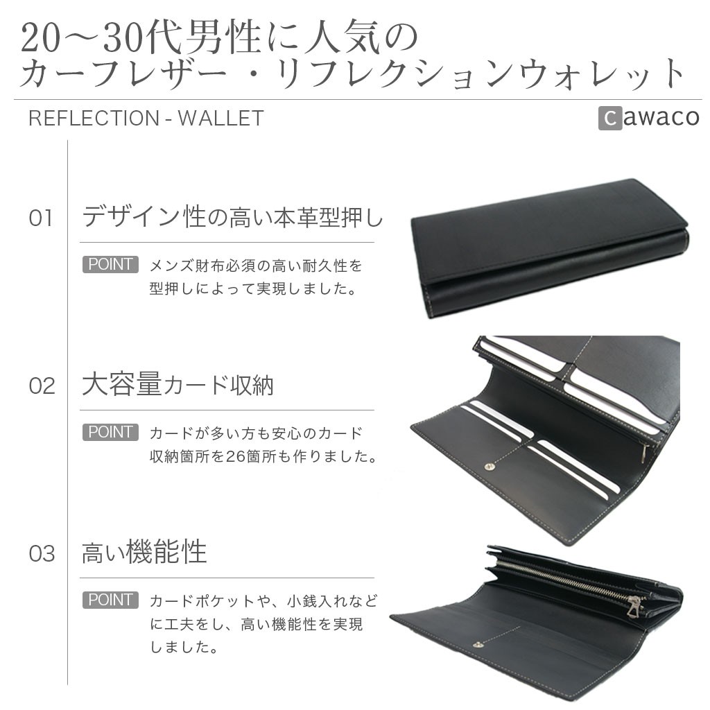 メンズ 長財布 に人気の牛革型押し加工のリフレクション 長サイフ型押し素材で、強度もアップされ、ハードユースにも対応した定番長財布。たっぷりカード収納で男性へのプレゼントにも喜ばれております。製品詳細:札入れ×2 / 小銭入れ×1 / カード収納×26カラー:ブラック / ブラウンサイズ:約 W10cm H19cm D3cmこんなキーワードで探されています。長さいふ カード たっぷり 収納 メンズ ウォレット 人気 ロングウォレット メンズ長財布 メンズ長サイフ 26枚 大容量 ロング財布 ロングサイフ 長サイフ 長財布 長さいふ 長ウォレット オレット ヲレット メンズ レディース 人気 カード入れ 小銭入れ 大きめ カード収納 本革 レザー バッファローレザー 牛革 カード多収納 カード大容量 メンズカード20枚カード24枚 以上 男財布 男長財布 メンズウォレット メンズロングウォレット