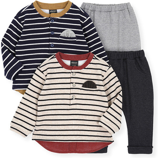 겨울에 따뜻하게 입기좋은 기모안감의 상하복이예요.부드러운 터치감으로 간편하게 입으면서도 차려입은 듯한 느낌의 정장스타일 남아상하복이예요.행거칩으로 댄디한 느낌을 주어 특별한 자리에도 손색없는 매력적인 아이템입니다.
