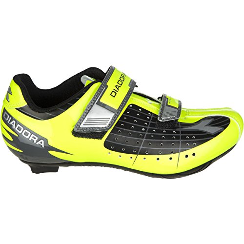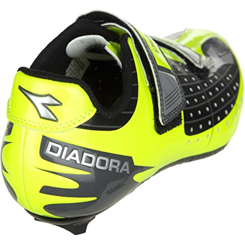 Studio : Diadora Publisher : Diadora Binding : Apparel Product Description Diadora believes young riders deserve shoes with much of the same technology as the adults they look up to, which is why the brand created the Phantom Jr -- a kid-sized version of the adult shoe of the same name built to accompany aspiring cyclists as they ride further, experience new terrain, and maybe even try their first races. Sturdy Suprell-Mesh wraps around the tops of the feet, acting as a barrier and conforming to growing feet without feeling constricting. The fabric's perforations and mesh panels allow it to wick moisture away from the skin quickly and efficiently, keeping young riders comfortable throughout a race, and the Race Last that Diadora constructs the shoe on is shaped to provide more room in the forefoot, giving newer riders time to adapt to the fit and feel of a cycling shoe, which may be tighter than what they're used to. Unlike those of us who had to precariously learn to clip-in as adults, young riders who master the typical 3-bolt system will be able to quickly take advantage of the Phantom Jr's Junior Sport Road CR sole. We can only imagine their excitement as they experience the stiffness and improved power transfer that the composite-reinforced nylon sole provides as they tackle intimidating climbs. Features like a shaped heel cup and dual hook-and-loop closures help the shoe stay secure and give young riders the same ability to make adjustments to accommodate their foot shape as adult models do, making sure they stay comfortable and content as they explore the roads. 0