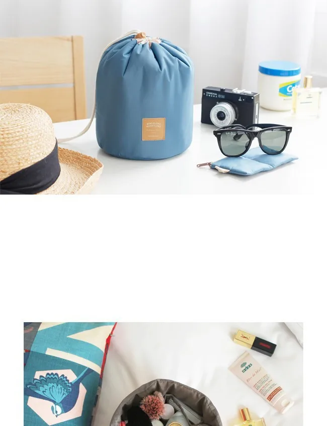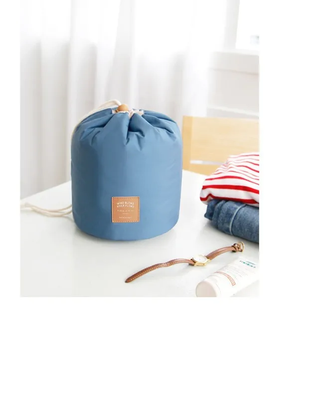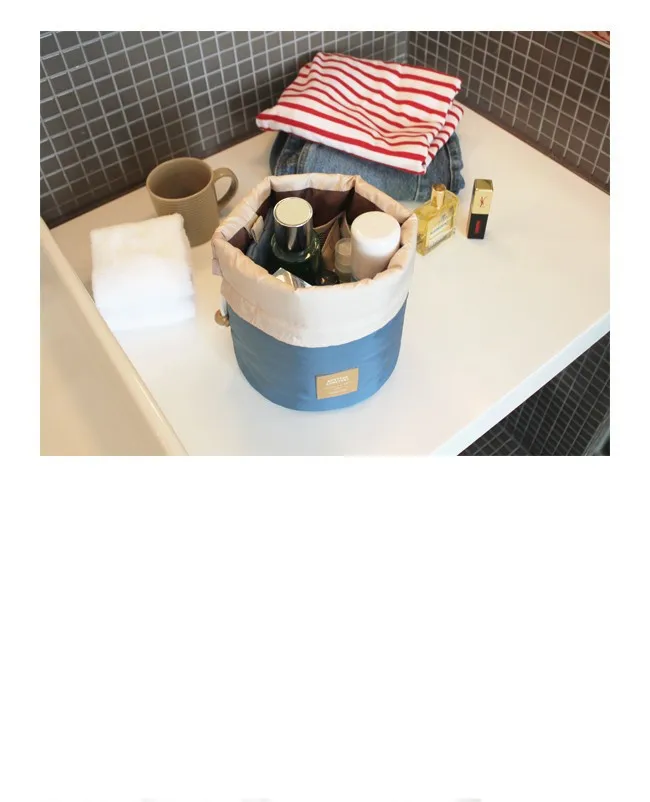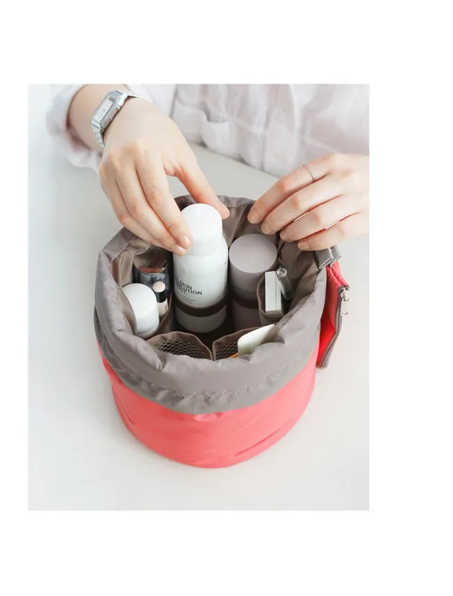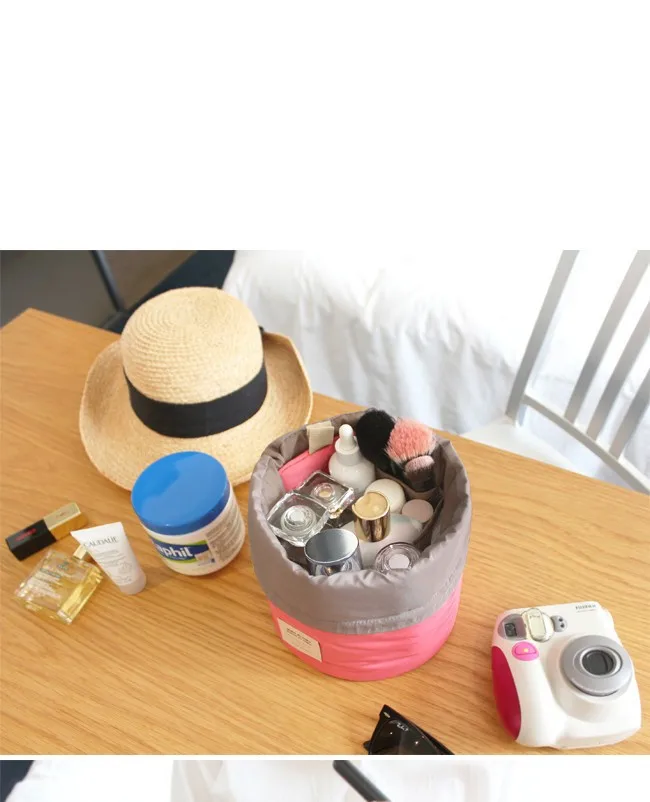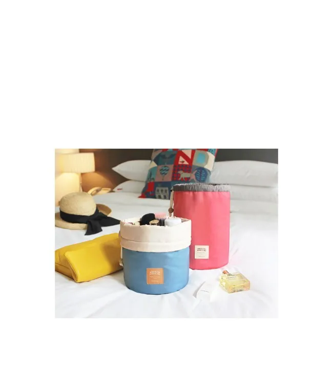 High Capacity Barrel Shaped Travel Women Brand Cosmetic Bags Nylon Organizer Toiletry Makeup Bags For Women Ladies Box Neceser