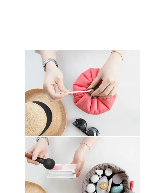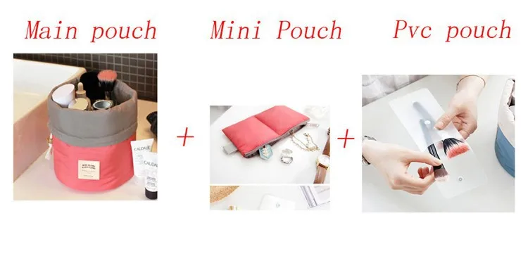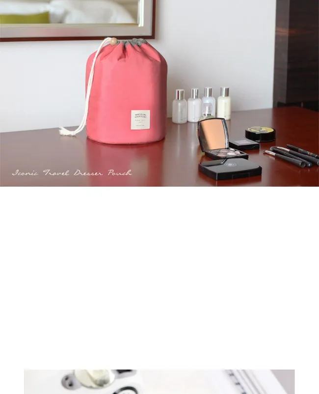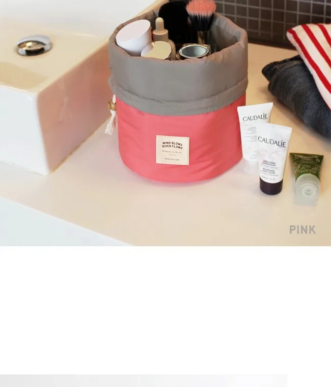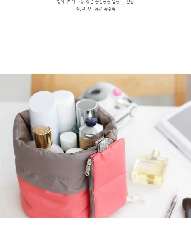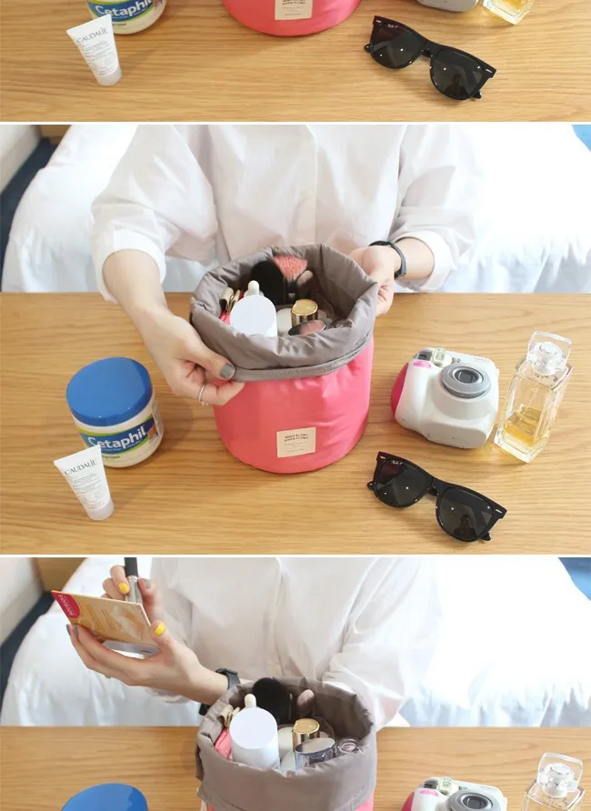High Capacity Barrel Shaped Travel Women Brand Cosmetic Bags Nylon Organizer Toiletry Makeup Bags For Women Ladies Box Neceser