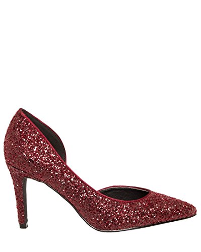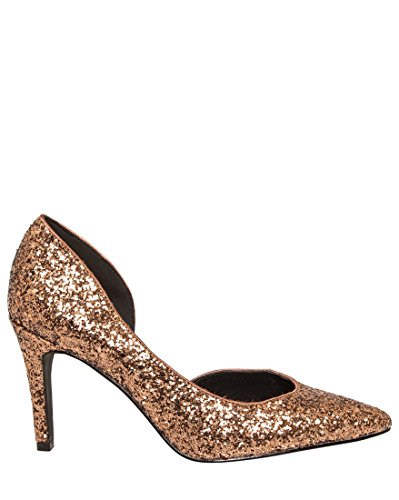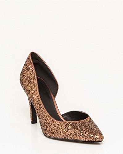 Product DescriptionA half d'Orsay silhouette lends an elegant touch to a pointy toe pump designed with a sparkling glitter finish.0