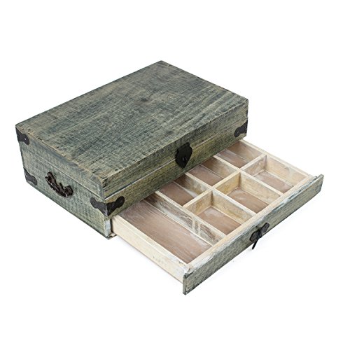 -. Feature : DIMENSIONS (INCHES): Length - 12 x Width- 8 x Breadth- 4 / MATERIAL: Hand carved from seasoned mango wood known for its durability and moisture resistant properties that is the reason behind the extended life of this jewelry box. Perfect for passing on to generations ahead, as it has great utility value. / DESIGN: With a raw distressed finish, this green Jewelry Chest comes with a topmost compartment and a bottom compartment that opens up as a drawer. / UTILITY: A great gifting option for your loved ones, it can be used to place your mini-treasures, collections or jewellery. / CLEANING INSTRUCTIONS: Use a soft cloth with liquid polish or warm water while cleaning to maintain its P.R.Istine look. By purchasing this product from Store Indya, you will help sustain the 1,000 year traditions of handmade artistry of ethnic artisans living off the heartland of India, as we will donate 10% of our profits to train a new generation of artisans with modern techniques of craftsmanship.