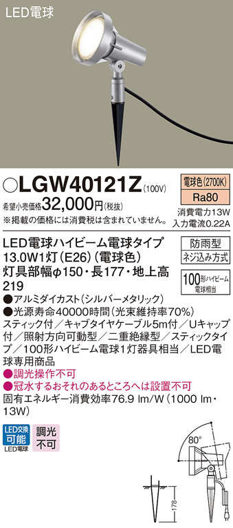 ●寸法(mm):灯具部幅φ150・長177・地上高219
