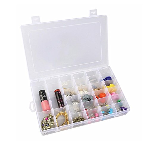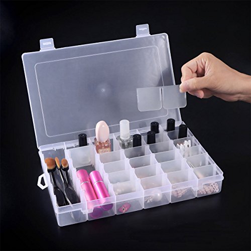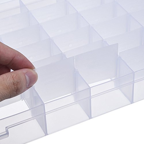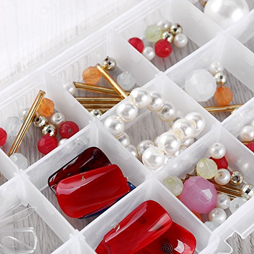 -. Feature : Perfect for storing earrings, necklaces, rings, pills, beads and other small accessories, bracelets, hairbands, crafts, nails, nuts and bolts, small electronic components, fishing hook, fish lure bait and more! Things won't tangle together anymore. / The grids inside the box can be moved around, so you can adjust the slots to create your own size compartments in order to fit individual needs. With the design of removable dividers, you can find the approP.R.Iate grid for storage. / Practical and easy to open: store goods conveniently, help you put away your small objects neatly, making them organized for easy finding next time. / Transparent and simple design: the container is made of clear hard durable plastic. / Box's total size (L*W*H): 10.8