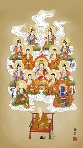 | 弘法大師を中心に、後光を放ち瑞雲に乗り、極楽の地よりお出ましになった十三仏。ありがたい御仏が観る者の心に安らぎを与えてくれます。 |