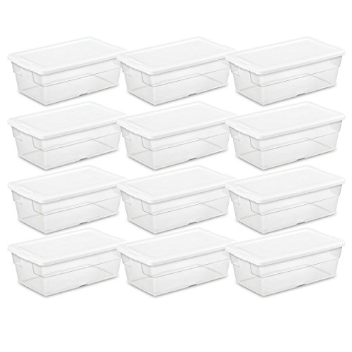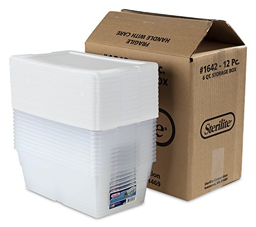 Sterilite 16428012 6 Quart/5.7 Liter Storage Box, White Lid with Clear Base (Pack of 12)